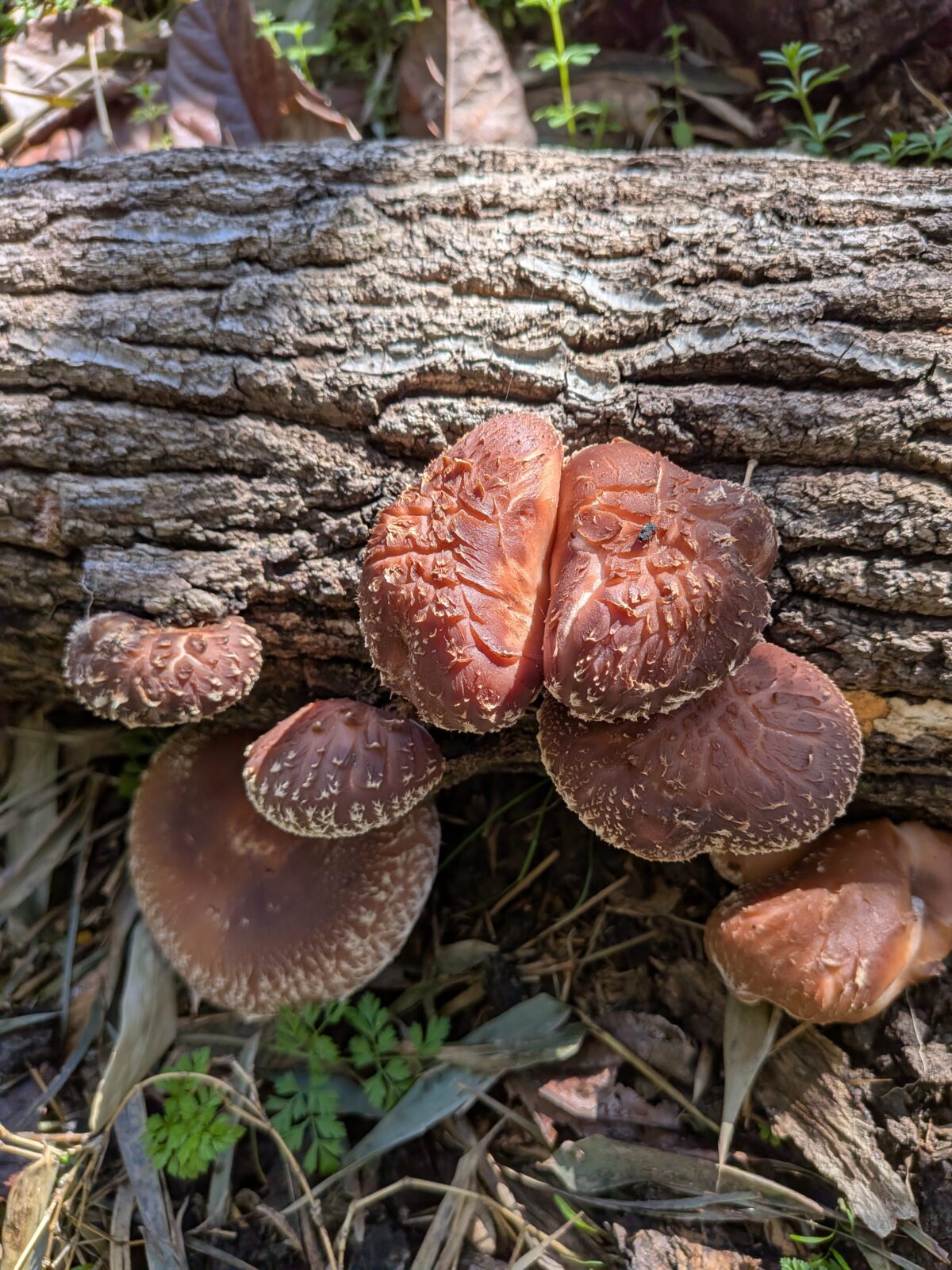 昨日は2カ所に置いている原木からたくさん生えていました。春に出るものを「はるこ」というそうですが、これがはるこの茸です。